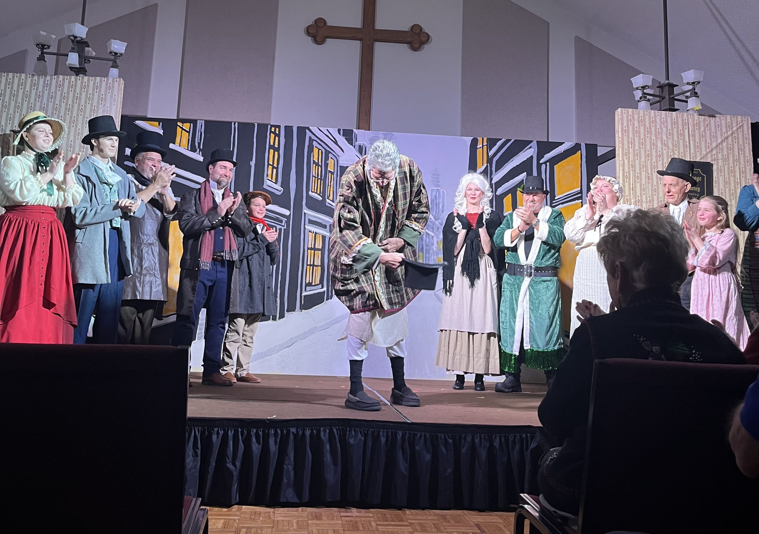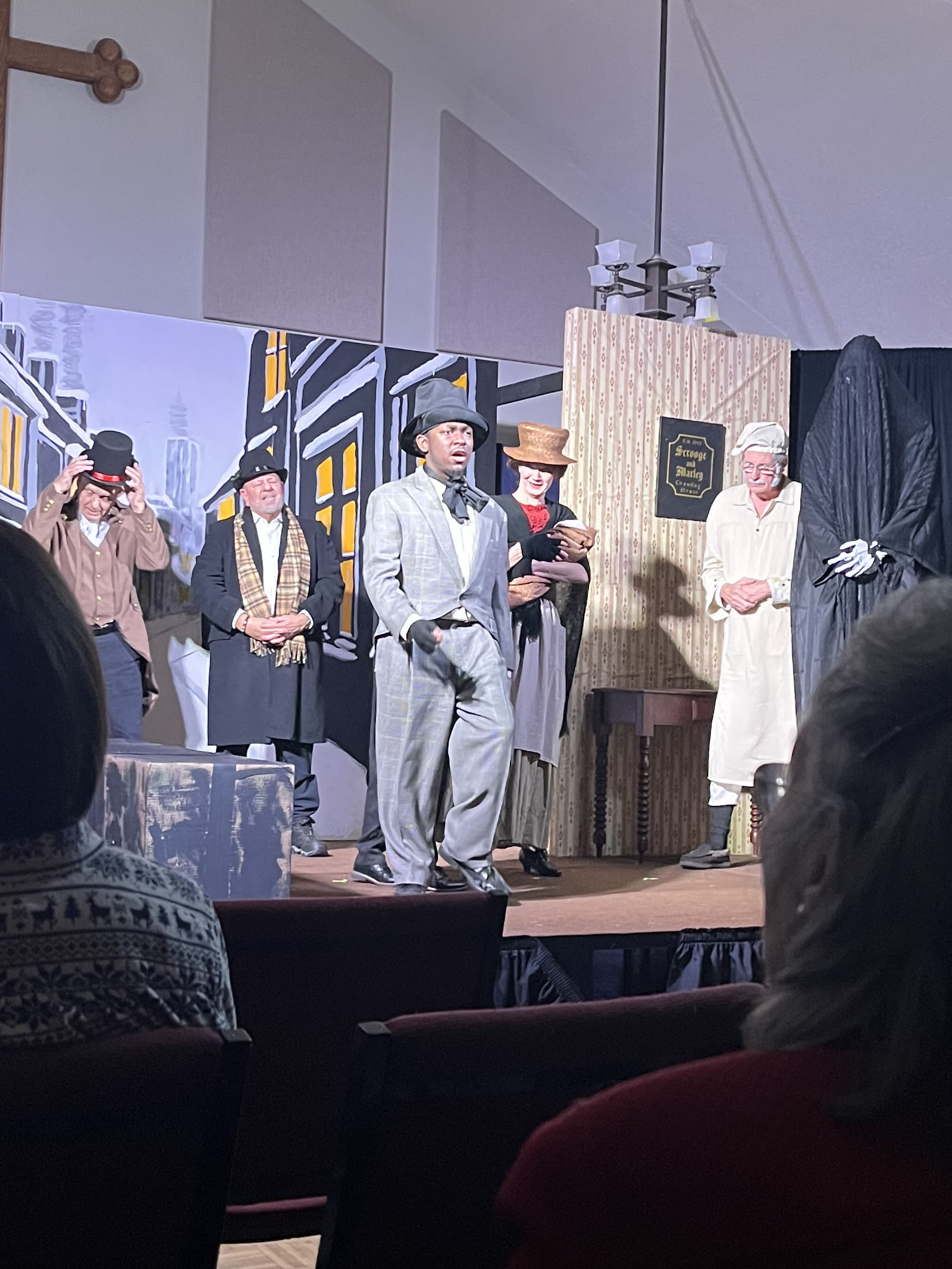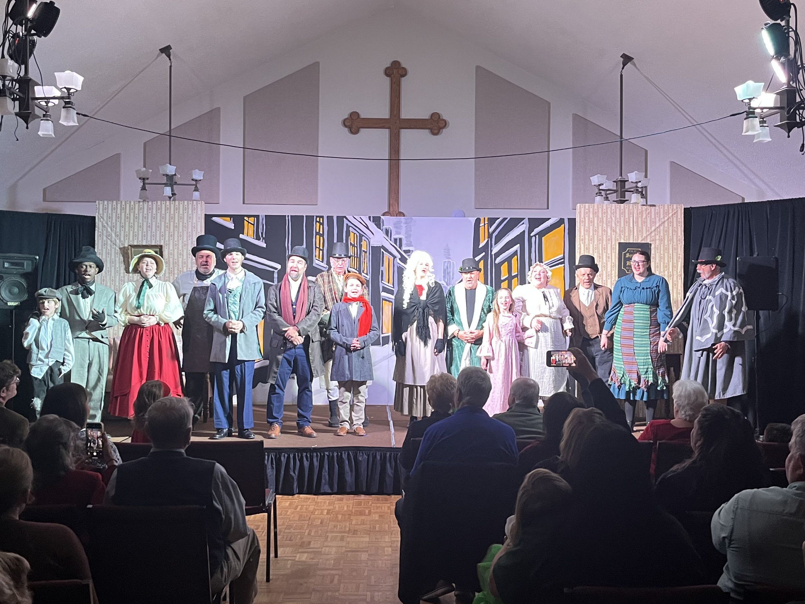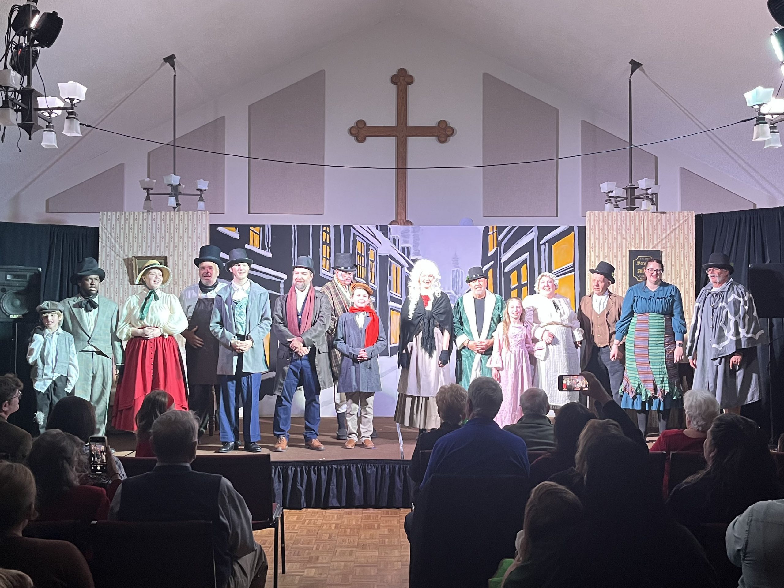 No “Bah Humbugs” here! Thanks to an extraordinary team of 32 volunteers—including a talented cast of 15 bringing the characters to life, a visionary director and musical director, and a dedicated crew of 15 handling tech and front-of-house duties—our holiday production of Scrooge! was a success! With generous donations of time, costumes, talent, and wonderful camaraderie, these volunteers shared Charles Dickens’ timeless tale of redemption through repentance and forgiveness, celebrating the true joy of giving through charity and goodwill. The show delighted approximately 260 patrons across the holiday season. We’re filled with gratitude for everyone involved and excited for the new year ahead with fresh shows on the horizon!