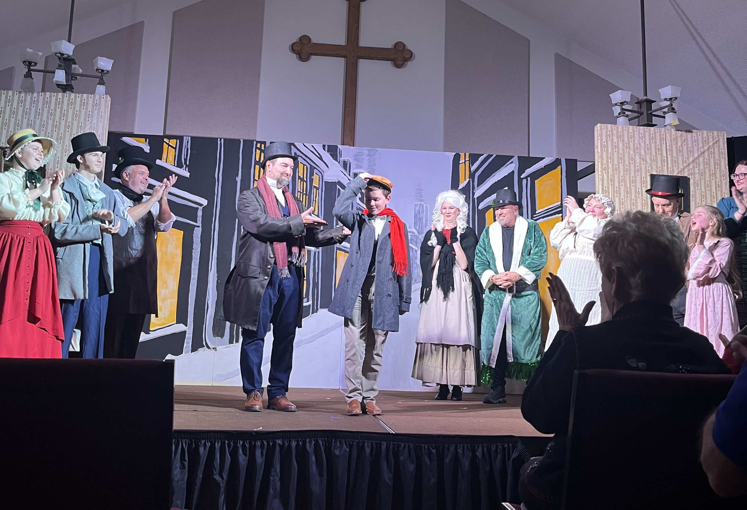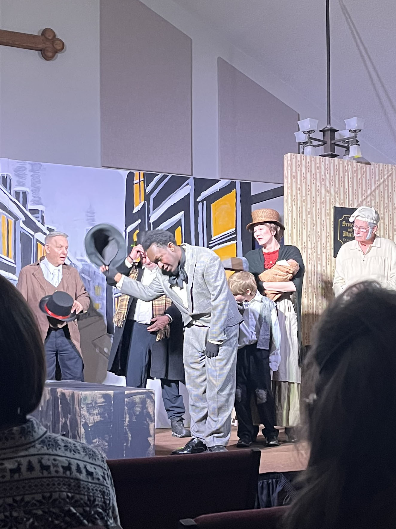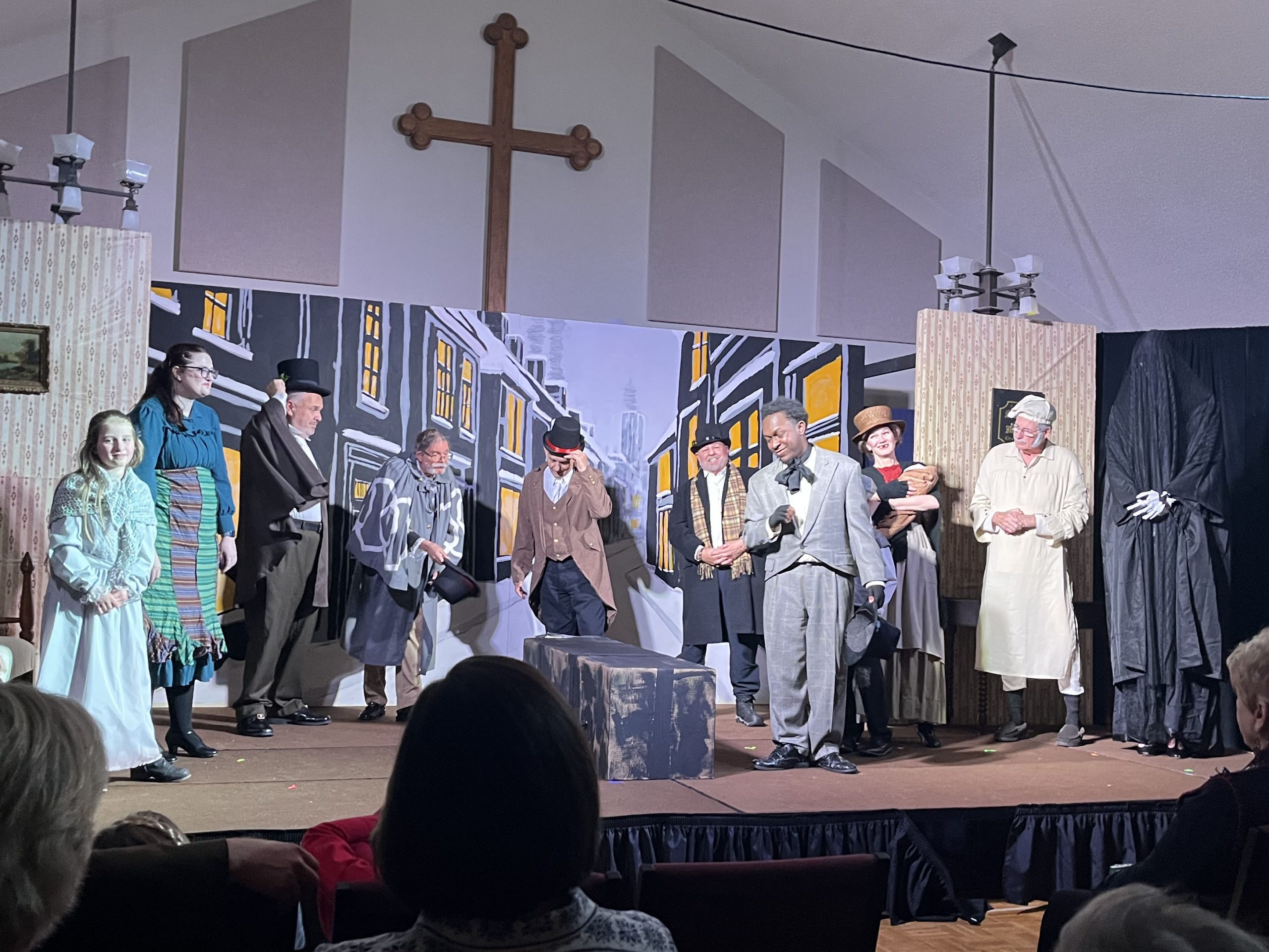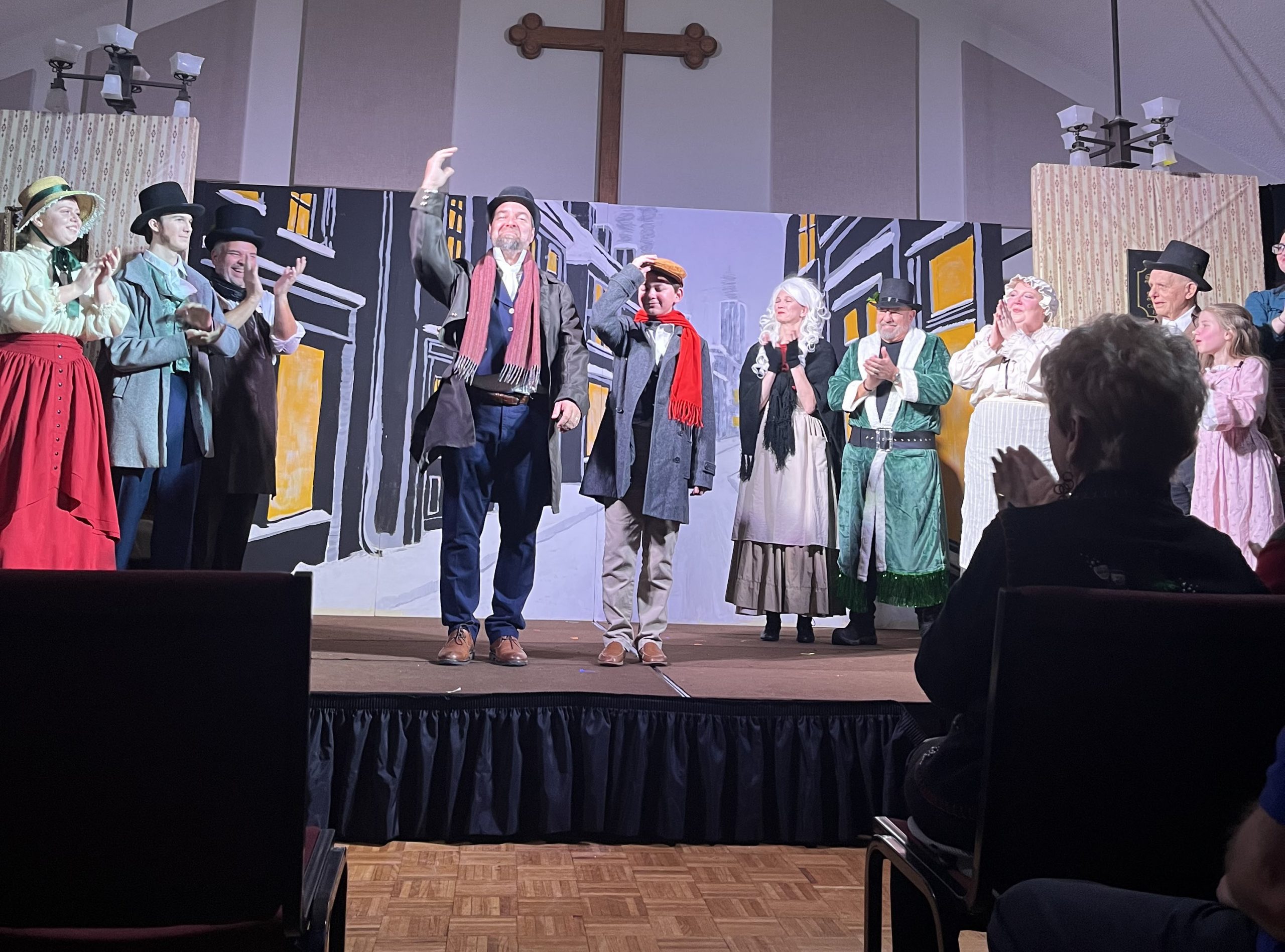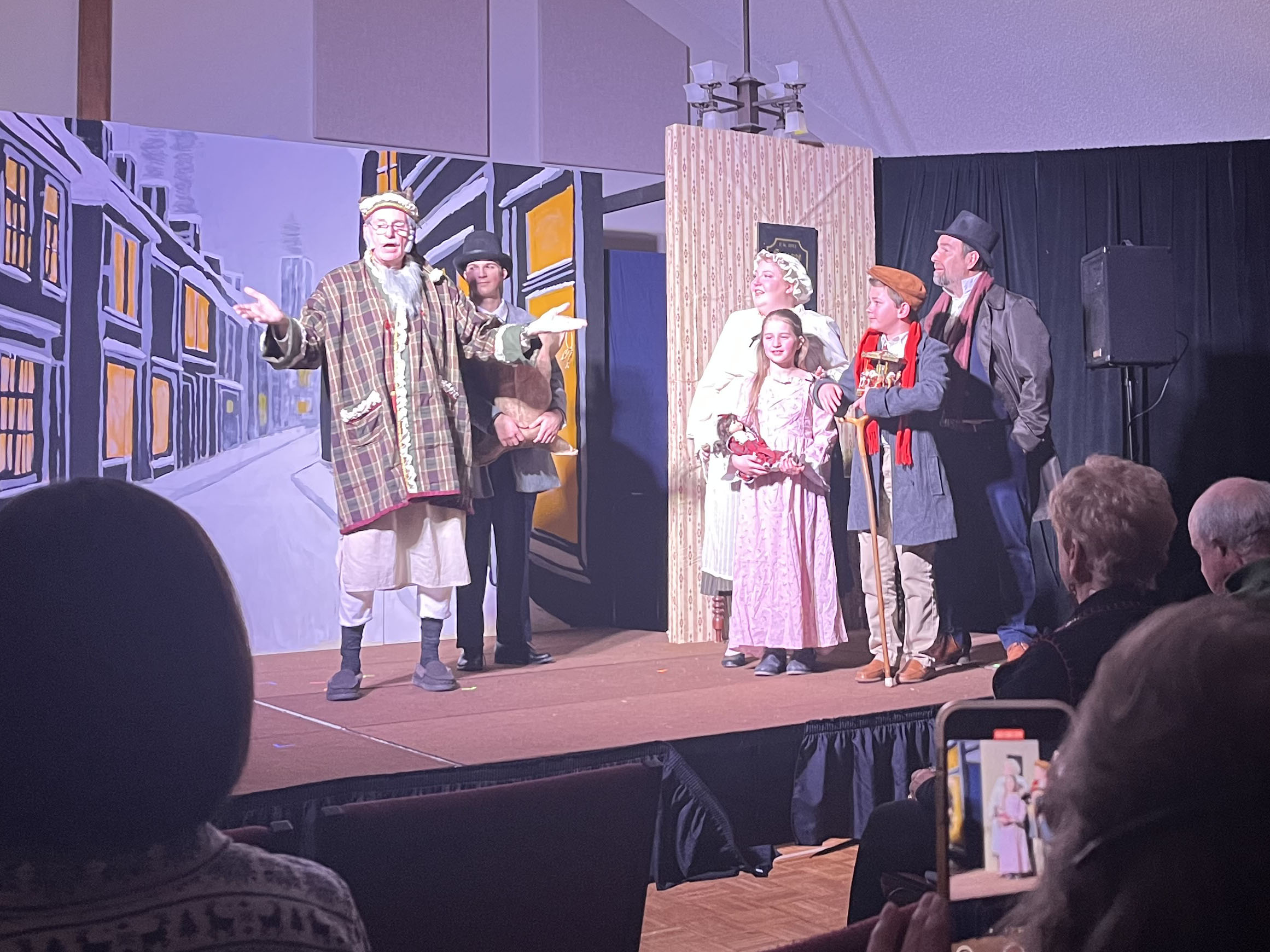 No “Bah Humbugs” here! Thanks to an extraordinary team of 32 volunteers—including a talented cast of 15 bringing the characters to life, a visionary director and musical director, and a dedicated crew of 15 handling tech and front-of-house duties—our holiday production of Scrooge! was a success! With generous donations of time, costumes, talent, and wonderful camaraderie, these volunteers shared Charles Dickens’ timeless tale of redemption through repentance and forgiveness, celebrating the true joy of giving through charity and goodwill. The show delighted approximately 260 patrons across the holiday season. We’re filled with gratitude for everyone involved and excited for the new year ahead with fresh shows on the horizon!