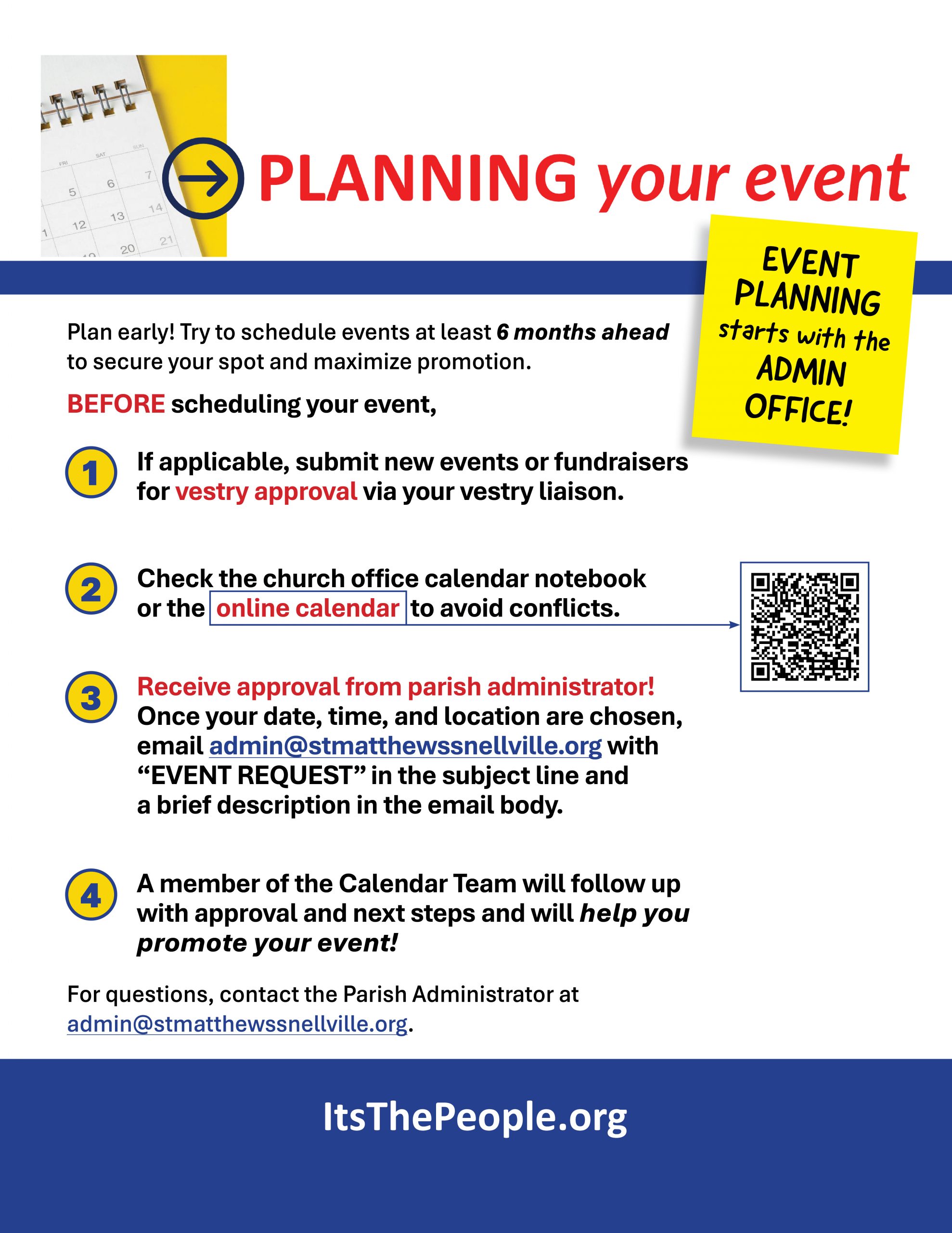 CURRENT CALENDAR <<< Use this document when planning your event.